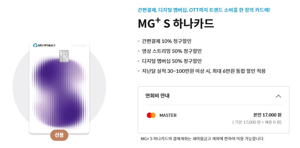 하나카드의 인프라 + MG 특화 혜택이 결합된 복합 제휴 카드입니다.